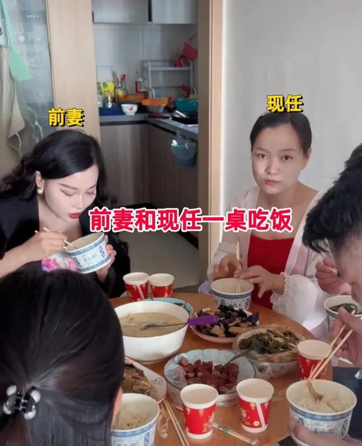 男子的前妻和现任同桌吃饭,两人又说又笑,